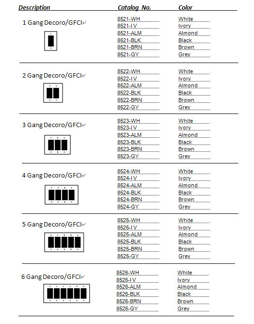 • Round on edges to prevent injury and wall damage Color-matched metal mounting screws individually wrapped in a small plastic bag to protect plates from scratches